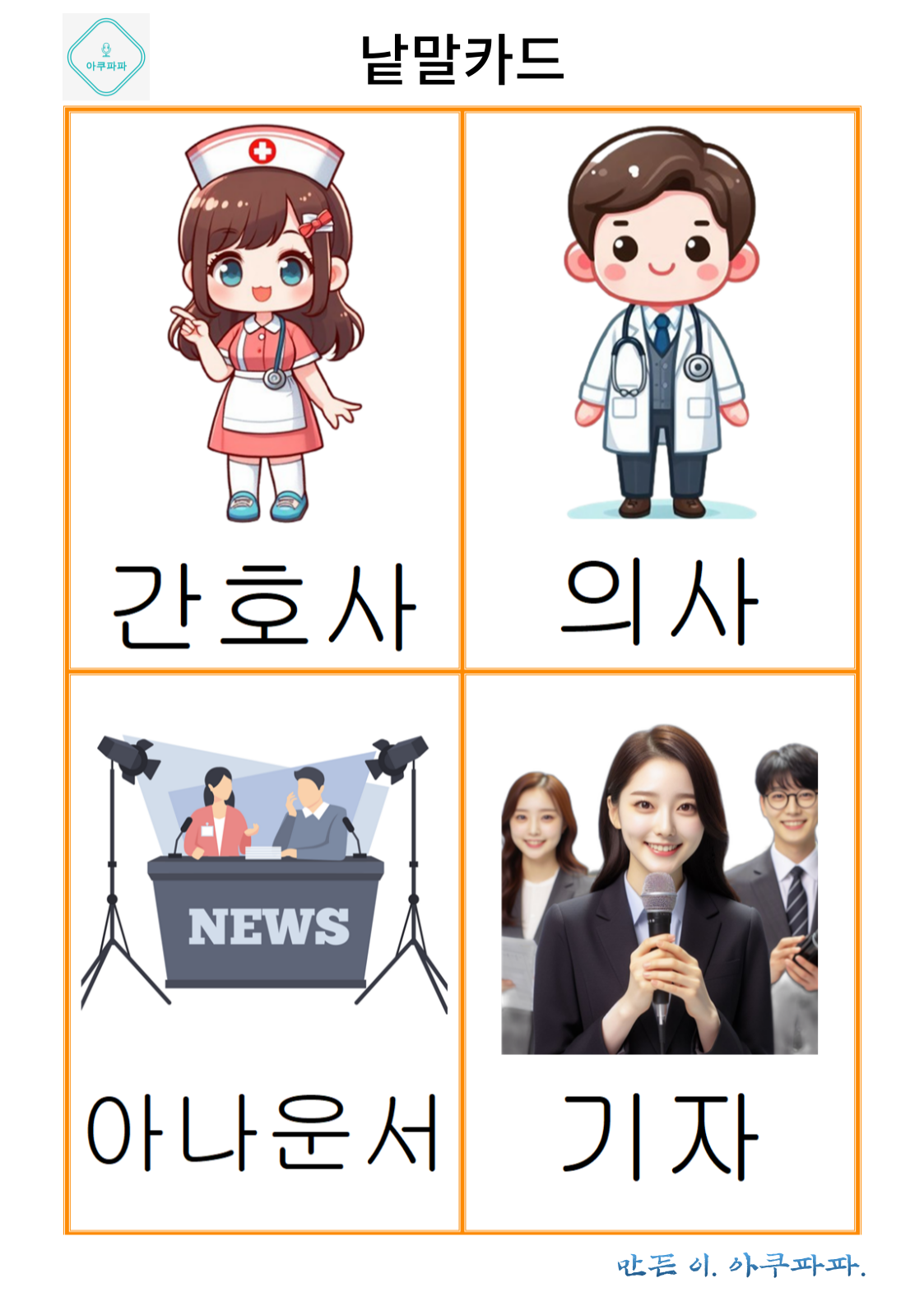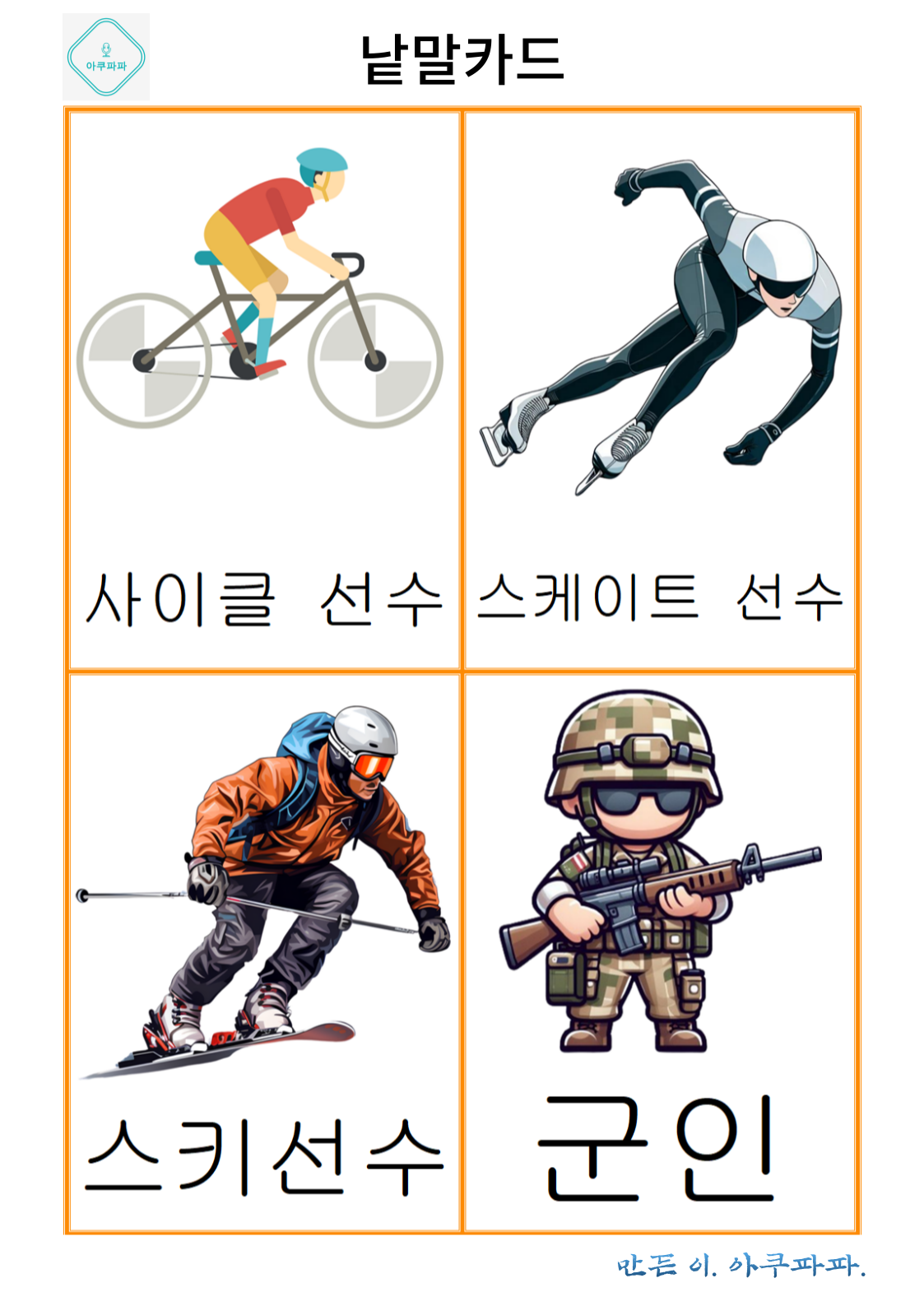 | 낱말 카드 놀이(word card game) - 사람들(People)1 (0) | 2024.04.27 |