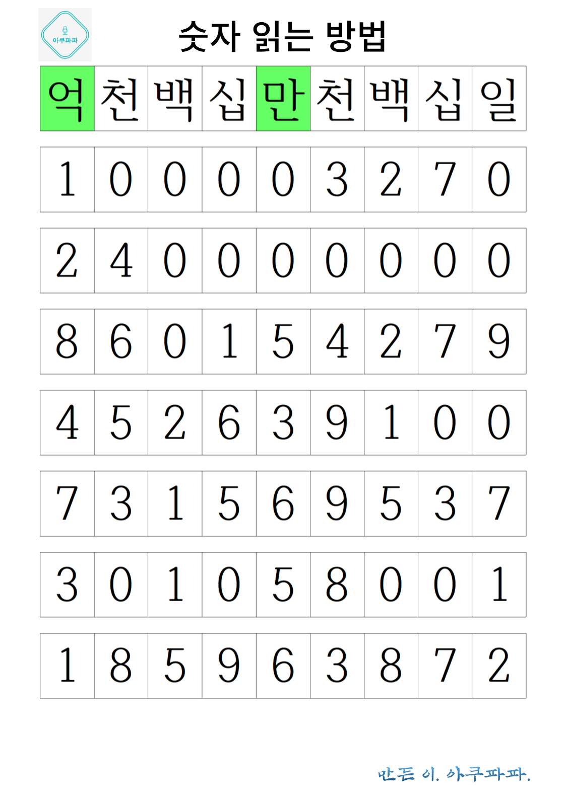큰 숫자를 어떻게 쉽게 읽을 수 있는지 배워보았습니다.